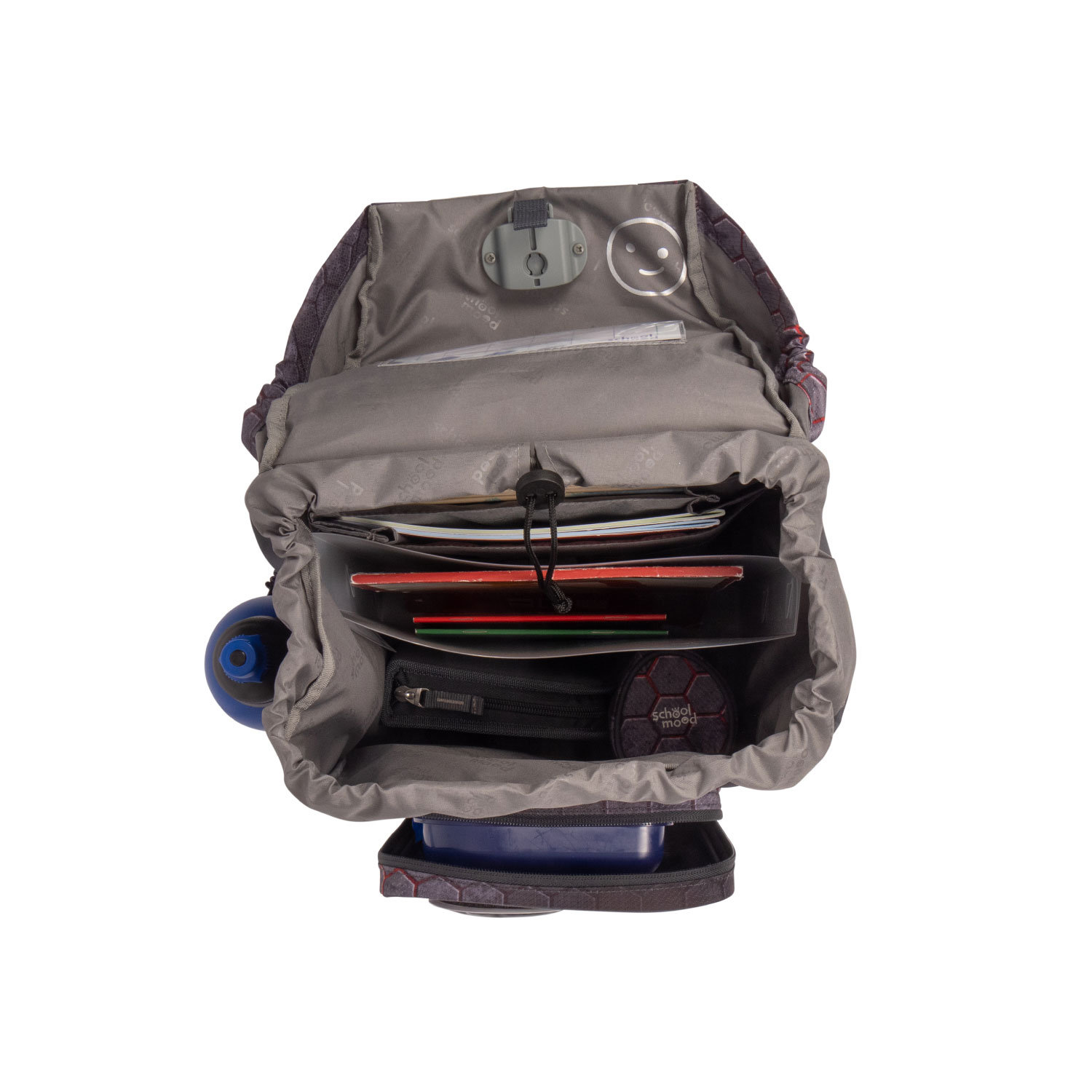 - Geräumiges Hauptfach mit integriertem Bücherfach (passend für Heftboxen); hält die schweren Bücher nah am Rücken, alles bleibt, wo es hingehört
