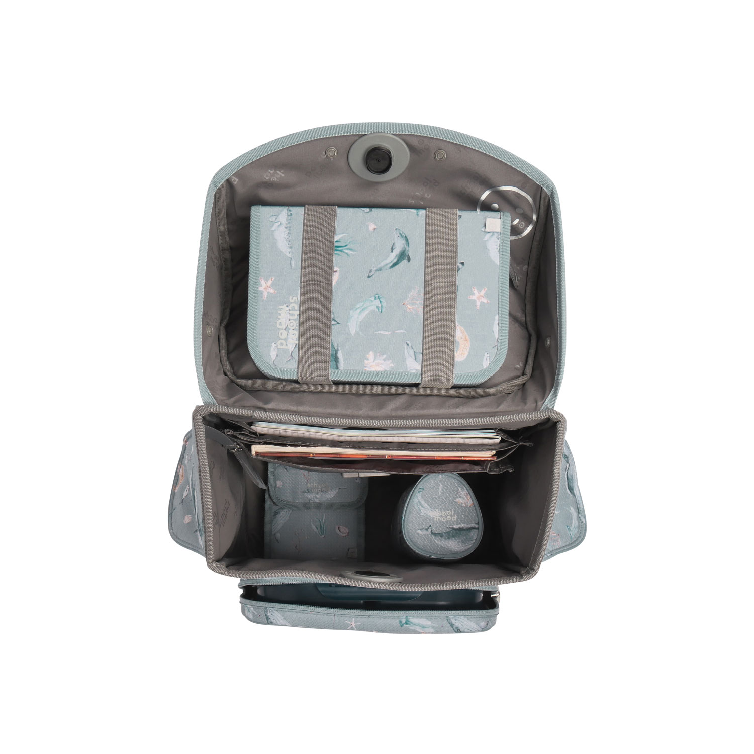 - Organisation: Geräumiges Hauptfach mit integriertem Bücherfach (passend für Heftboxen); hält die schweren Bücher nah am Rücken, alles bleibt, wo es hingehört