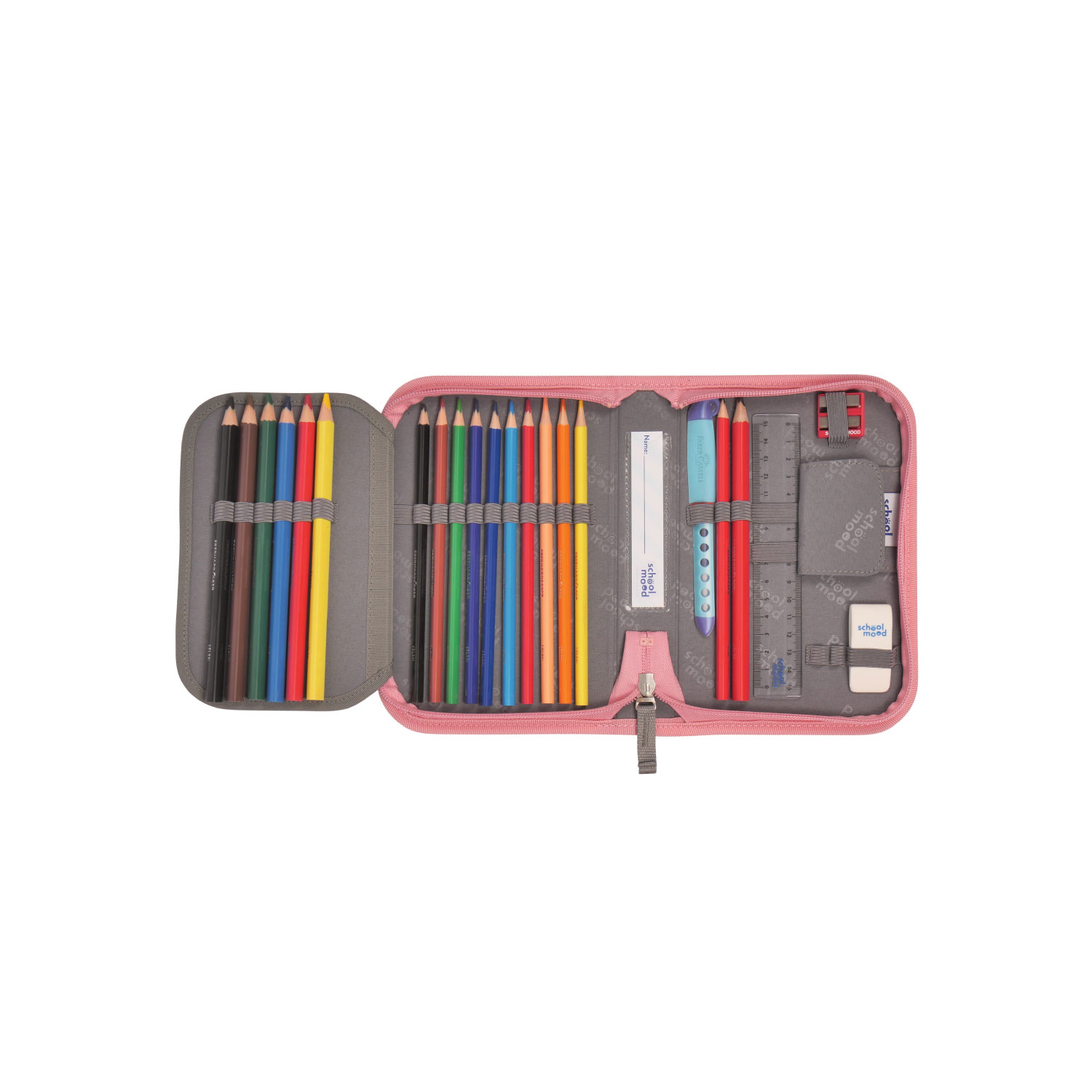 Der Schulranzen Timeless in klassischer Ranzenform bietet ein enormes Platzangebot und ist gleichzeitig super leicht und angenehm zu tragen. Ein geräumiges Hauptfach, Fronttasche und große Seitentaschen sorgen für Ordnung und kinderleichtes Handling. Das 7-teilige Set enthält Ranzen, Turnbeutel, Etui (21-tlg., Markenfüllung von Eberhard Faber), Schlamperrolle, Brustbeutel, Brotdose und Patchy-Set (3-tlg.).