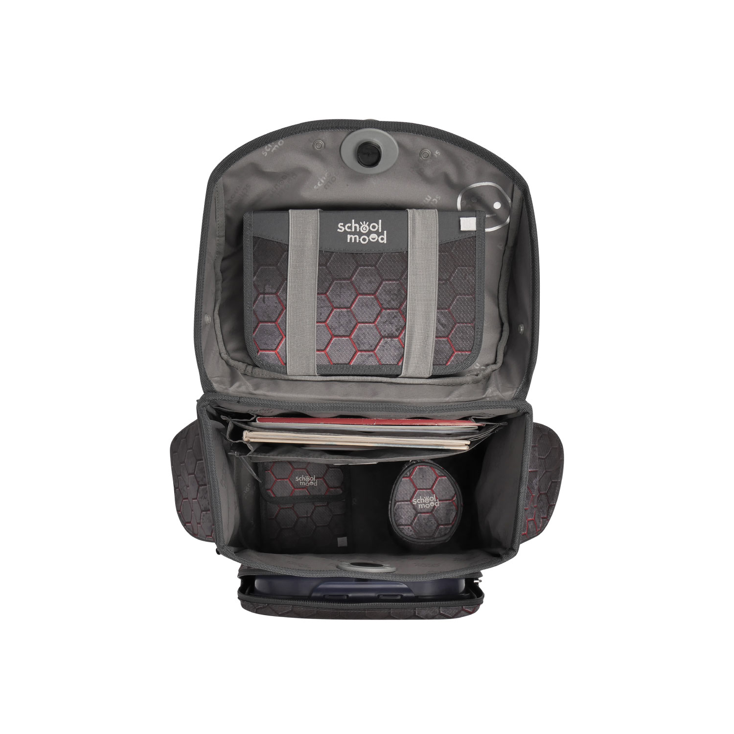 - Organisation: Geräumiges Hauptfach mit integriertem Bücherfach (passend für Heftboxen); hält die schweren Bücher nah am Rücken, alles bleibt, wo es hingehört