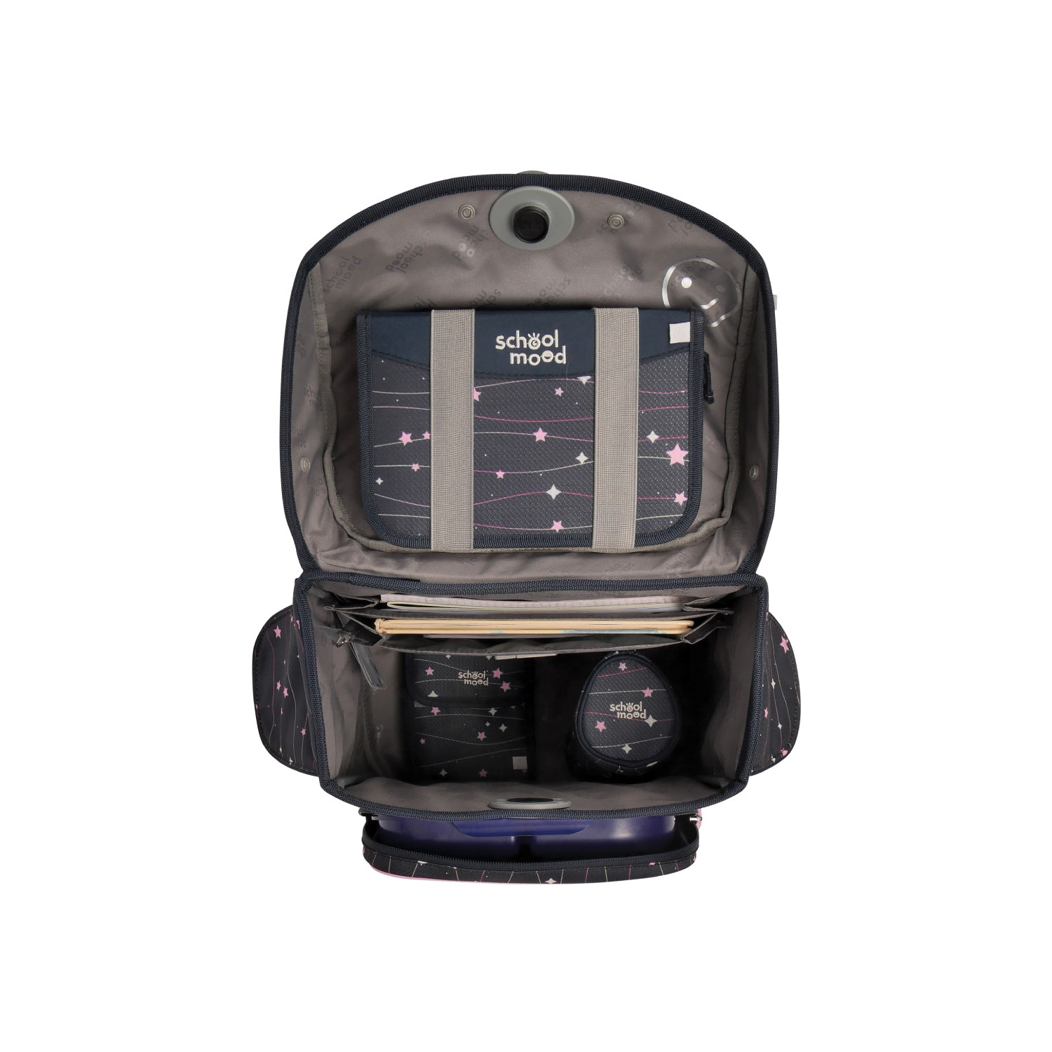 - Geräumiges Hauptfach mit integriertem Bücherfach (passend für Heftboxen); hält die schweren Bücher nah am Rücken, alles bleibt, wo es hingehört
