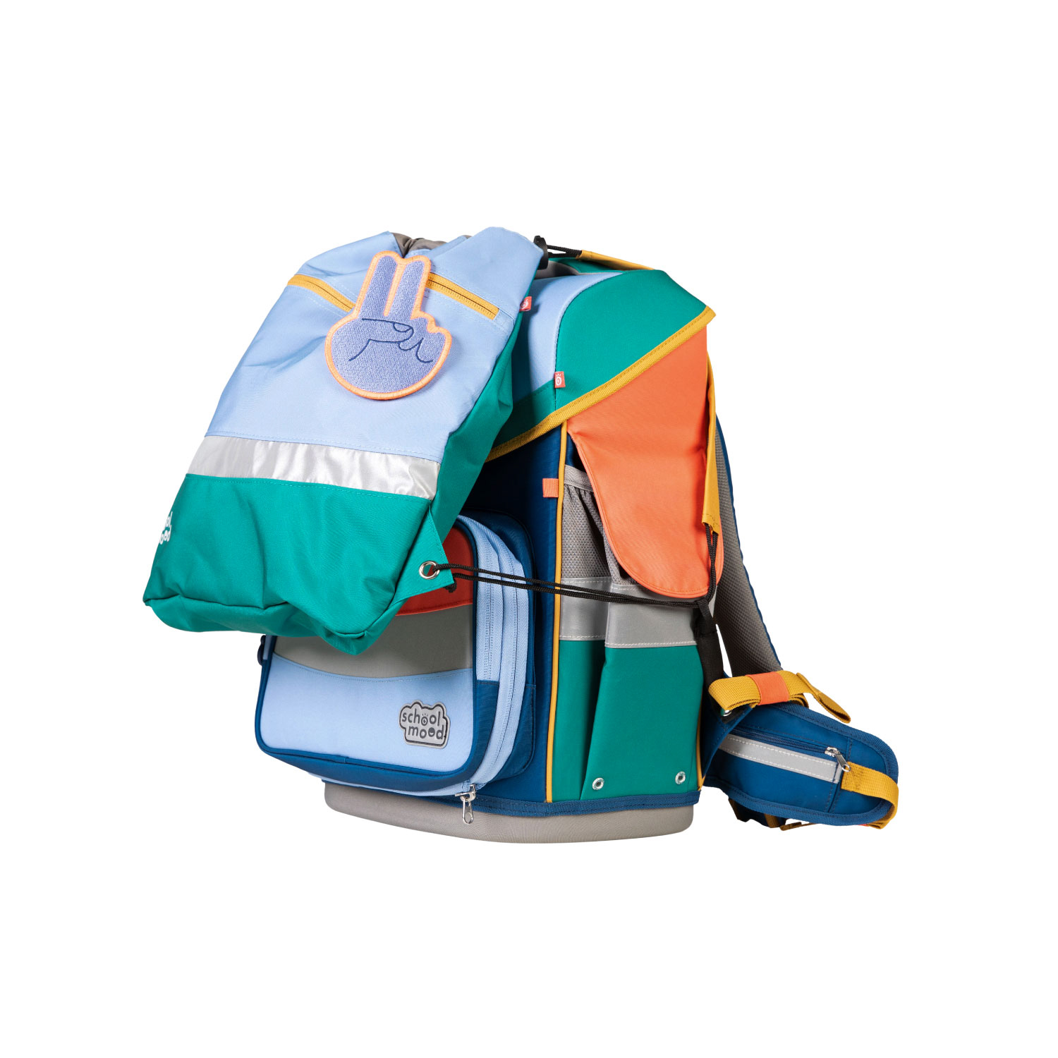 Der Schulranzen Timeless in klassischer Ranzenform bietet ein enormes Platzangebot und ist gleichzeitig super leicht und angenehm zu tragen. Ein geräumiges Hauptfach, Fronttasche und große Seitentaschen sorgen für Ordnung und kinderleichtes Handling. Das 6-teilige Set enthält Ranzen, Turnbeutel, Etui (21-tlg., Markenfüllung von Eberhard Faber), Schlamperrolle, Brotdose, sowie 5 tolle Stickpatchies.