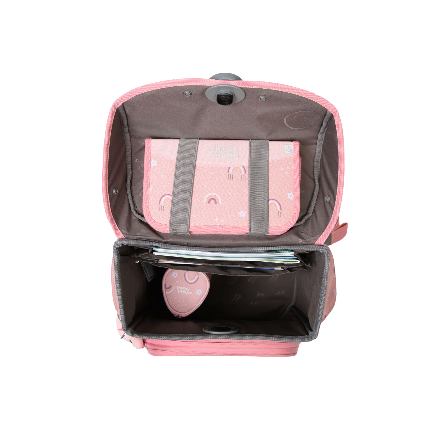 - Geräumiges Hauptfach mit integriertem Bücherfach (passend für Heftboxen); hält die schweren Bücher nah am Rücken, alles bleibt, wo es hingehört